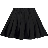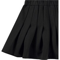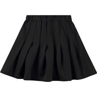 Zwarte rok in viscose. De rok heeft een elastische tailleband, waardoor het makkelijk aan te trekken is en comfortabel draagt. Het heeft een cirkelvormige pasvorm en plooien rondom, waardoor hetmooi valt.