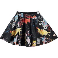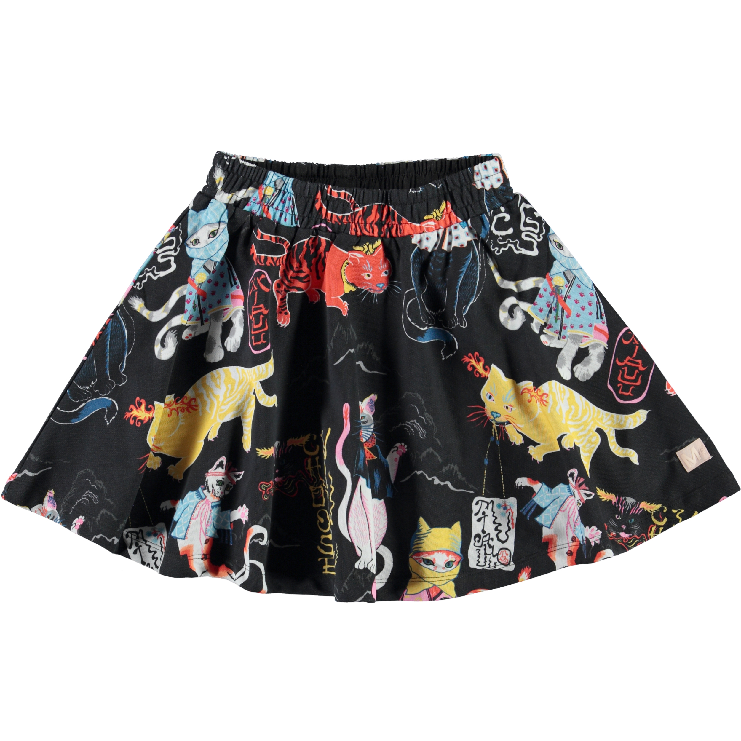 Barbera is een zwarte rok met een ninja kattenprint. De rok heeft een elastische taille waardoor het comfortabel zit.