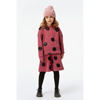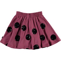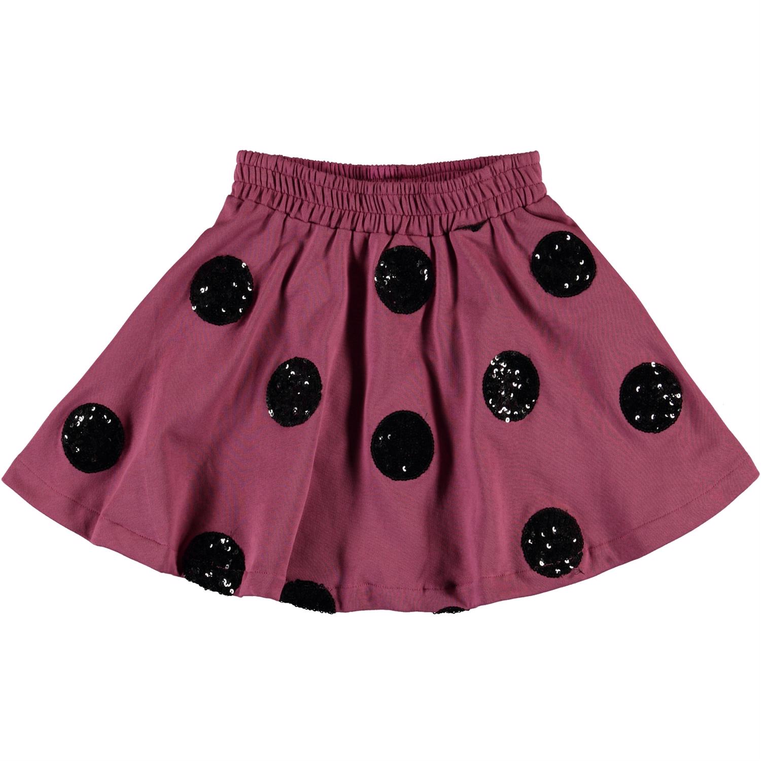 Barbera is een bessenkleurige rok met zwarte cirkels van pailletten. De rok heeft een elastische taille waardoor het comfortabel zit.