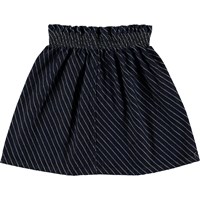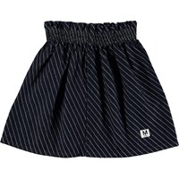 Becca is een donkerblauwe spijkerrok met diagonale strepen. De rok heeft een elastische taille voor een comfortabele pasvorm.