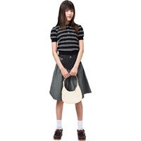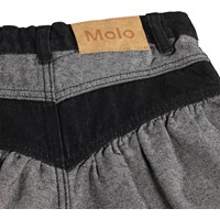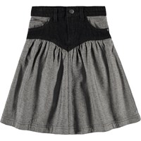 Mooie tweekleurige spijkerrok gemaakt van biologisch katoen met een uniek ontwerp. De rok heeft een paneel aan de voorkant en fijne geplooide details die een spannende en flatterende pasvorm creëren. Het heeft drie zakken, drukknoopjes tot maat 140, daarna het wordt vastgemaakt met klassieke jeansknopen en een verstelbare taille voor optimaal comfort.