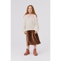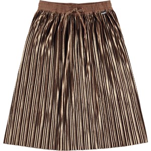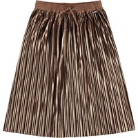 Becky is een lange geplooide goudkleurige rok. De rok heeft een elastische taille met koordjes die de jurk enorm comfortabel maken.