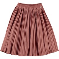 Becky is een geplooide midi ook in oudroze met een elastiek in de taille.