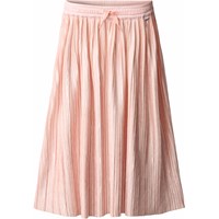 Geplooide rok van zachte roze fluweel. De rok heeft elastiek in de taille met een strikje, waardoor het hoog in de taille of op de heup gedragen kan worden. De rok heeft een lengte tot halverwege het scheenbeen en valt prachtig in de zware velours.