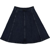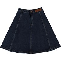 Bellatrixi is een wijde blauwe spijkerrok met zichtbare stiksels.