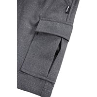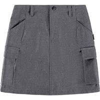 Grijze rok met zilveren draad. De rok is op knielengte, heeft een normale pasvorm, de taille heeft lusjes voor een riem, knoop- en ritssluiting en het heeft een interne elastiek in de taille om de juiste pasvorm voor alle kinderen te garanderen. De rok heeft voor- en achterzakken en ook grote cargozakken aan de zijkanten.