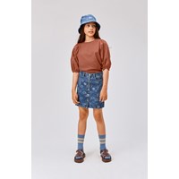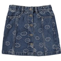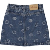 Bera in Blue Happiness is een spijkerrok in donkerblauw met een knoopsluiting aan de voorkant. Bera is geweven in een denim kwaliteit met kleine lichtblauwe vrolijke gezichten. De rok heeft riemlussen en zakken aan de voorzijde. Draag hem met het Hedly jack voor een super coole look.