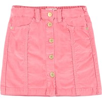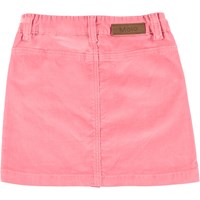 Bera is een fluwelen rok in roze met een knoopsluiting aan de voorkant. Het heeft riemlusjes en een zak aan de voorkant.