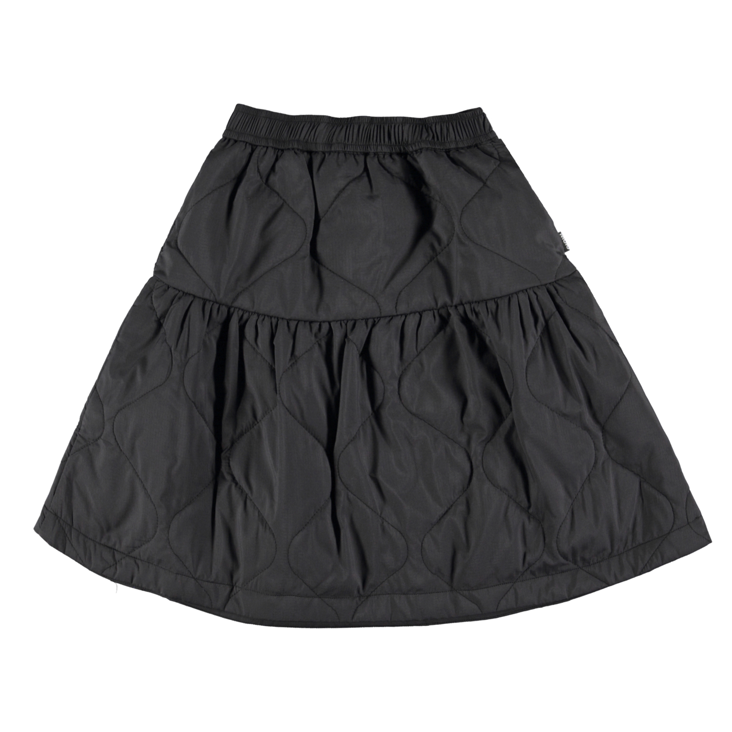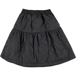 Zwarte gevoerde midi rok. Deze rok is van 100% nylon en heeft het mooiste doorgestikte patroon. De rok is gevoerd dus perfect voor koude dagen met een warme panty eronder. De rok heeft elastiek in de taille en heeft een normale pasvorm. Voor een heel schattig setje draag je het met het Harriet vest die dezelfde kleur en stof heeft.