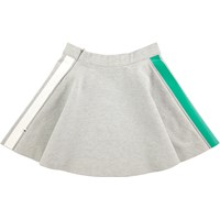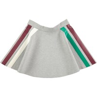 Sportieve, grijze rok met kleurrijke strepen en een rits aan de zijkant.