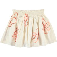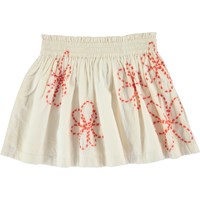 Crèmekleurige rok met rood geborduurde bloemen en een elastische taille.