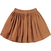 Gebrand oranje, wijde ronde rok in fijne corduroy. Deze rok is van 100% katoen, heeft steekzakken en elastiek in de taille, waardoor het makkelijk aan en uit te trekken is. De rok heeft een knoopsluiting aan de voorkant met witte knopen. De rok valt tot op de knieën en heeft een normale pasvorm. Voor de perfect set draag je het met de Rida blouse die dezelfde kleur heeft.