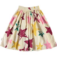 Bera is een lichtgekleurde, lange rok met een sterrenprint in verschillende kleuren. Het heeft een elastische taille.