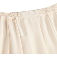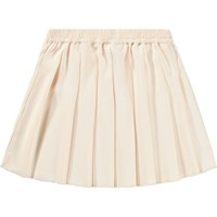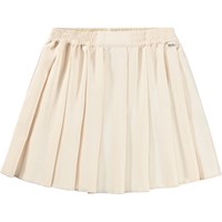 Gebroken witte sportieve rok met brede plooien rondom, wat de rok een mooie volheid en beweging geeft. De taille heeft een elastische rand, waardoor de rok comfortabel is om te dragen en gemakkelijk aan en uit te trekken is.