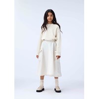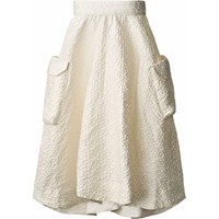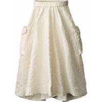 Gebroken witte rok met veel volume. Deze rok heeft een jacquard-geweven bloemenpatroon en grote zakken aan de zijkanten. De rok is op knielengte en heeft een elastische taille waardoor het gemakkelijk is aan te trekken.
