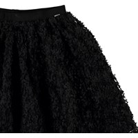 Brook is een zwarte rok waarvan de buitenste laag vele kleine bloemetjes bij elkaar heeft. Het heeft een elastische taille.