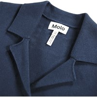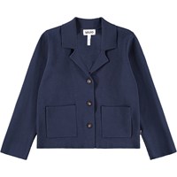 Mooie blauwe vest van biologisch katoen. De vest heeft een v-hals, een mooie kraag, een knoopsluiting aan de voorkant en kleine zakken. Combineer het met de bijpassende rok.