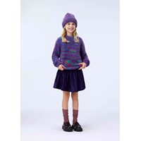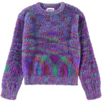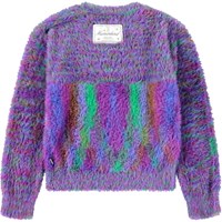 Kleurrijke pluizige trui gemaakt van nepbont. De trui heeft ribboorden rond de kraag, mouwen en taille, evenals een leuk label met de tekst ''Humankind - Being Kind to Humankind'' op de achterkant.