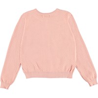 Georgina is een lichtroze vest met knoopjes.