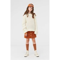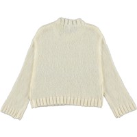Gertina is een lichtgele gebreide trui in 70% alpaca wol. De trui heeft lange wijde mouwen.