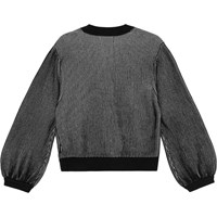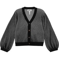 Zwarte en wittte vest van corduroy biologisch katoen. Het vest heeft een ribgebreide kraag en sluiting met 4 knopen. Het heeft lange mouwen die aan de ribboord plooitjes hebben om een volle mouw te creëren. Het elastische corduroy materiaal lijkt van kleur te veranderen, wat dit vest een unieke uitstraling geeft.