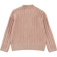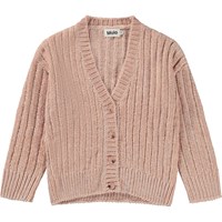 Roze gebreide vest van chenille garen van 100% polyester. Het heeft een knoopsluiting aan de voorkant, een geribbelde sluiting en hals en geribde boorden aan de lange mouwen en onderkant. Het heeft een normale pasvorm en is de perfecte vest op koudere dagen als extra laag, of op warme dagen als dunne jas.