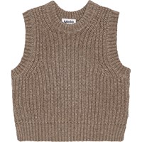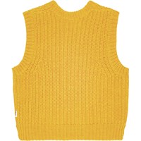 Gele gebreide overgooier van een zachte wol/acryl mix. Perfect om over jurken, shirts en blouses te dragen voor een extra coole touch aan je outfit. De overgooier heeft een ronde hals met ribbels, geribbelde armsgaten en zoom. Het heeft ook een normale pasvorm.