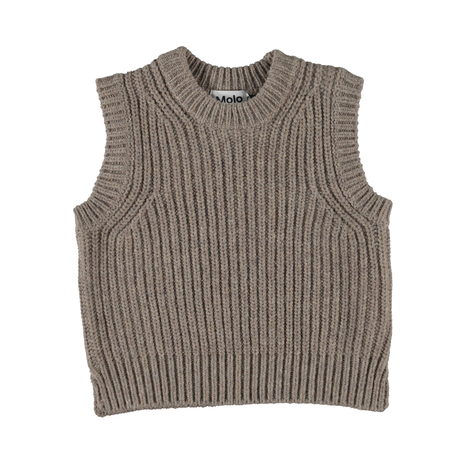 Grijsbruine grof gebreide spencer- Perfect voor over jurken, overhemden en blouses als extra stoere laag op elke outfit. De gebreide spencer is gemaakt van een mix van wol en acryl. Het heeft een ronde hals met rib, een ribboord aan de mouwen en onderkant en heeft een normale pasvorm.