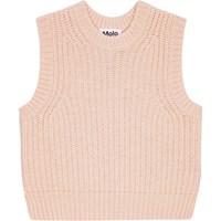 Zalmroze gebreide overgooier van een zachte wol/acryl mix. Perfect om over jurken, shirts en blouses te dragen voor een extra coole touch aan je outfit. De overgooier heeft een ronde hals met ribbels, geribbelde armsgaten en zoom. Het heeft ook een normale pasvorm.