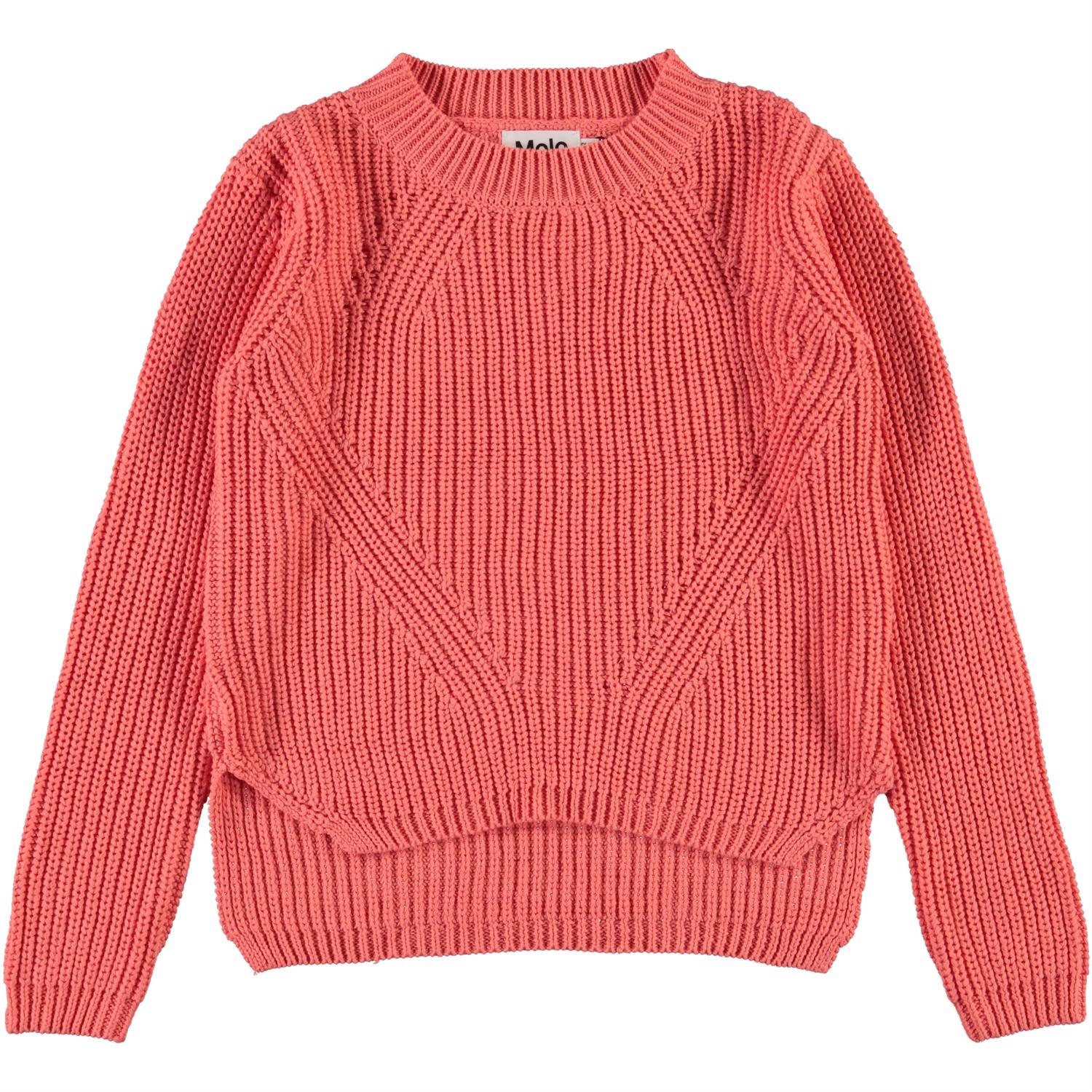 Gillis is een koraalrode gebreide katoenen trui met lange mouwen. Het heeft een ronde hals en een mooi breipatroon. De trui is van 100% biologisch katoen.
