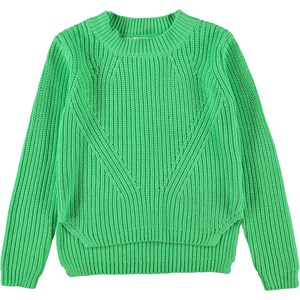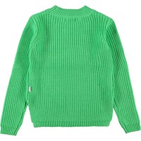 Gillis is een groen gebreide trui met lange mouwen in 100% katoen. Gillis is in een ribpatroon dat toeneemt en afneemt aan de voorkant voor een exclusieve look. De achterkant is langer dan de voorkant.