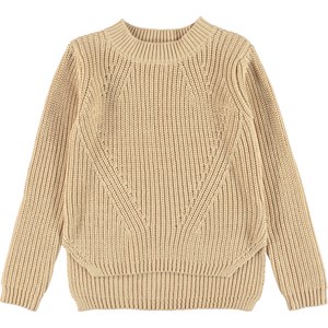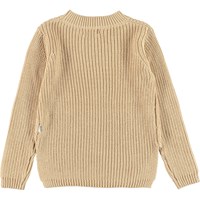 Gillis is een lichtgele gebreide katoenen trui. Het heeft een ronde hals en een prachtig patroon.