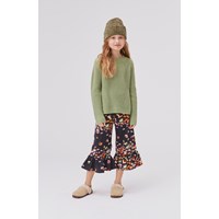 Gillis is een groene gebreide katoenen trui. Het heeft een ronde hals en een prachtig patroon.