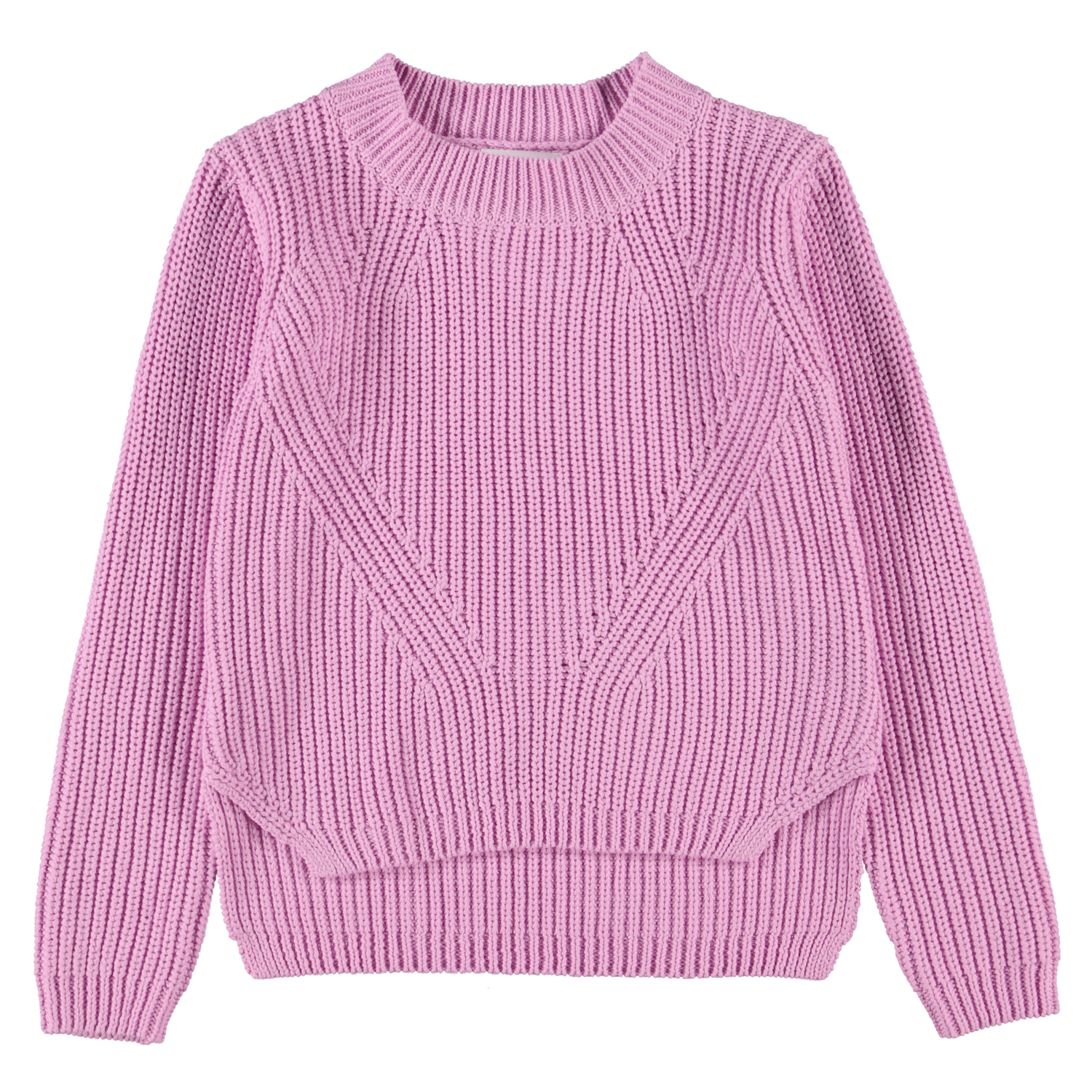 Gillis is een roze gebreide trui met lange mouwen in 100% katoen. Gillis is in een ribpatroon dat toeneemt en afneemt aan de voorkant voor een exclusieve look. De achterkant is langer dan de voorkant.