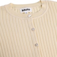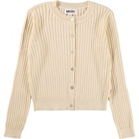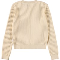 Gebroken witte gebreid vest gemaakt van zacht, biologisch katoenen rib. Het vest heeft een aansluitende pasvorm en knopen langs de voorkant. Het vest heeft fijne ribboorden rond de mouwen, onderkant en hals, voor een elegante uitstraling.