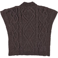 Gracelyn is een donkerbruine gebreide spencer. Het is lang en heeft een v-hals.