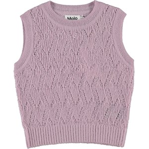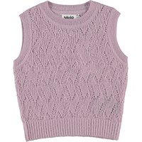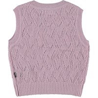 Lichtpaarse gebreide spencer. Perfect voor over jurken, shirts en blouses als een extra stoere laag op elke outfit. Deze spencer is van een alpaca/wolmix en heeft een mooi gaatjespatroon. Het heeft een ronde hals met rib, een ribboord aan de mouwen en onderkant en heeft een normale pasvorm.