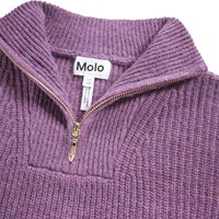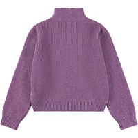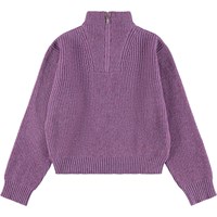 Paarse ribgebreide trui gemaakt van een wolmix. De trui heeft een ruimvallende pasvorm met een hoge kraag met rits.