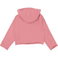 Roze sweater in een korte pasvorm. De sweater heeft een capuchon en een wijde, comfortabele pasvorm. Voor een complete look draag je de sweater met de bijpassende joggingbroek.