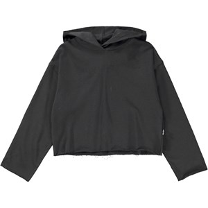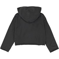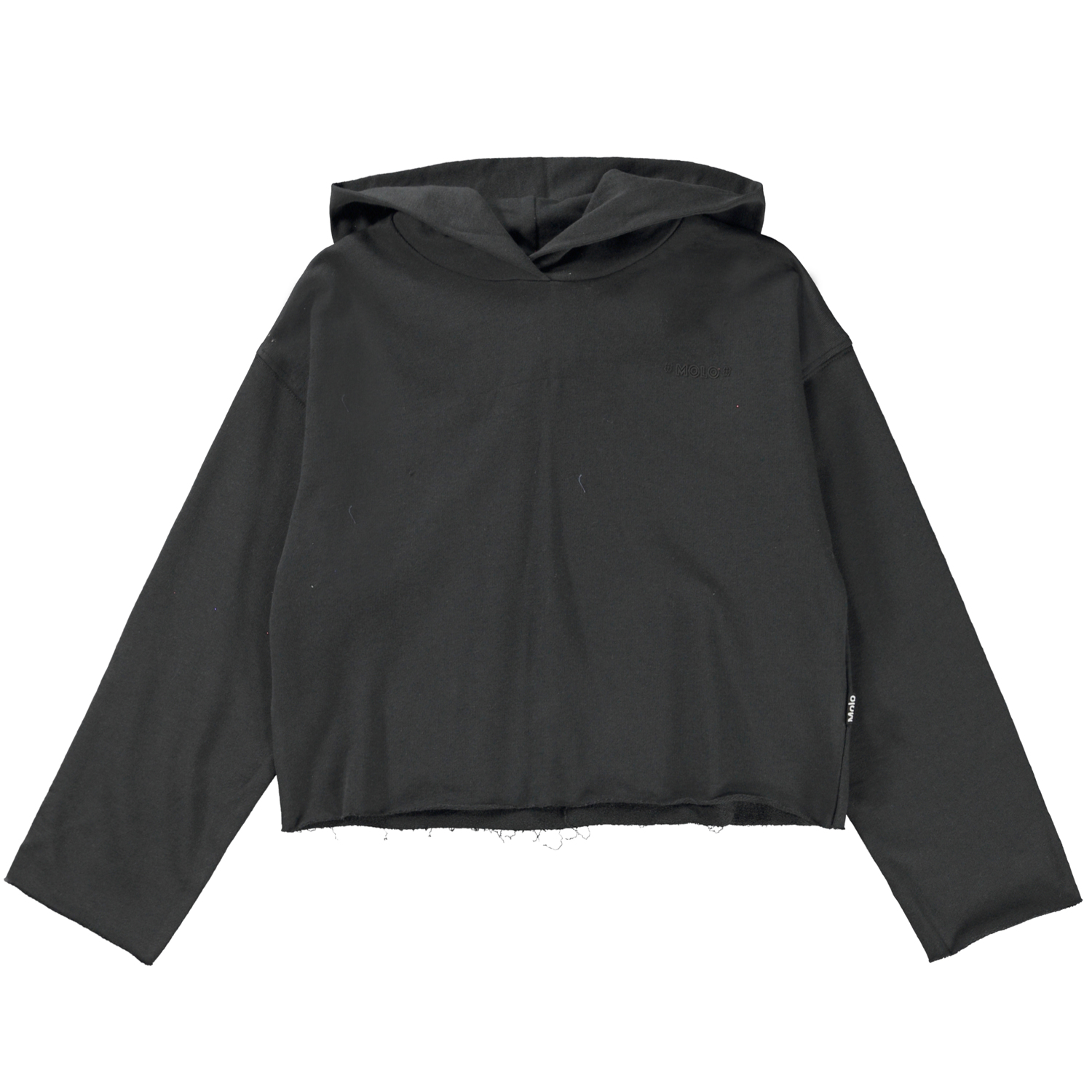 Zwart sweater in een korte pasvorm. De sweater heeft een capuchon en een wijde, comfortabele pasvorm. Voor een complete look draag je de sweater met de bijpassende joggingbroek.