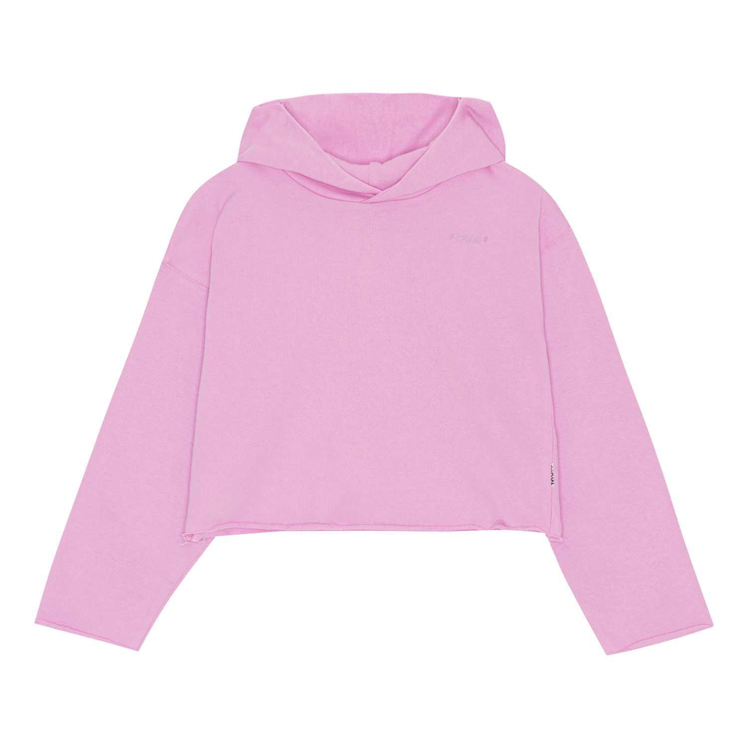 Maddy is a rose coloured sweatshirt in a cropped shape with a hood. Wear it with the matching sweatpants.