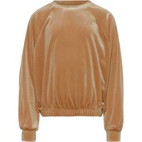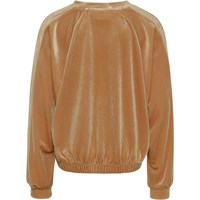Goudkleurige sweater met raglanmouwen. Deze sweater is van 100% fluweel en is zacht en comfortabel. Het heeft een ronde hals, elastiek aan de onderkant en een normale pasvorm. Voor een mooie gouden look draag je deze sweater met de bijpassende Alfa broek die van dezelfde stof is.