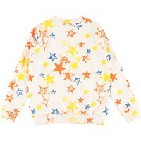 Malvina is een lichtgekleurde trui met een kleurrijke print van sterren. Draag het met de bijpassende joggingbroek voor een comfortabele look die je omringd door sterren.