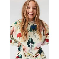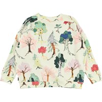 Mandy is een lichtgekleurde sweater met een print van blije en kleurrijke bomen. De trui heeft een wijde pasvorm.