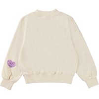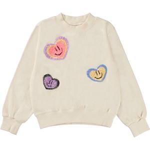Gebroken witte sweater met aura harten in pailletten. Stel je voor dat alles een aura heeft: mensen, planten en dieren. De print is van aura harten die gloeien door kleuren, glimlachen en liefde. Aura kleuren zijn als de kleuren van de regenboog en weerspiegelen de gevoelens van onze innerlijke geest. We zijn bereid ons hart te openen voor alle dingen die we niet kunnen zien en geloven dat er meer in het leven is dan wat onze ogen kunnen zien. Deze sweater is van 100% katoen, heeft een ronde hals met ribboord, ribboord aan de mouwen en onderkant en het heeft een normale pasvorm.