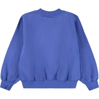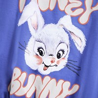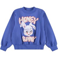 Blauwe sweater gemaakt van biologisch katoen met een print van een schattig getekend konijn en de tekst ''Honey Bunny''. De sweater heeft een ronde hals met ribboorden rond de mouwen, hals en taille en een ruimvallende pasvorm.