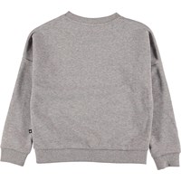 Marigold is een grijze trui met een beetje glitter. Marigold heeft op de voorkant geborduurde vogels.