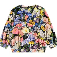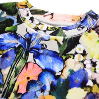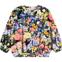 Kleurrijke sweater gemaakt van zacht katoenen velours met een bloemenprint. De sweater heeft een ronde hals met ribboorden rond de mouwen, hals en taille en een ruimvallende pasvorm. Combineer de sweater met de bijpassende broek om een complete en comfortabele velours set te creëren.