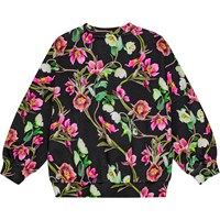 Zwarte sweater van zacht biologisch katoen. De sweaterheeft een ruime pasvorm en een ronde hals met geribbelde boorden rond de mouwen, hals en zoom. Het heeft een all-over print van kerstrozen in witte en lichtroze tinten, prachtig verweven met hun groene bladeren. Combineer de sweater met een bijpassende rok om een complete en comfortabele jersey set te creëren.