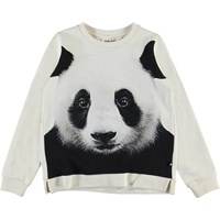 Marlee is een witte trui met een pandaprint op de voorkant. De trui  heeft zijsplitjes en een ribboord rond de hals, mouwen en onderkant.